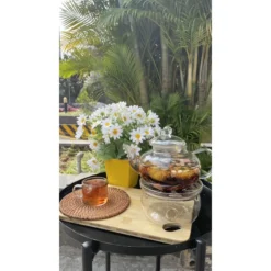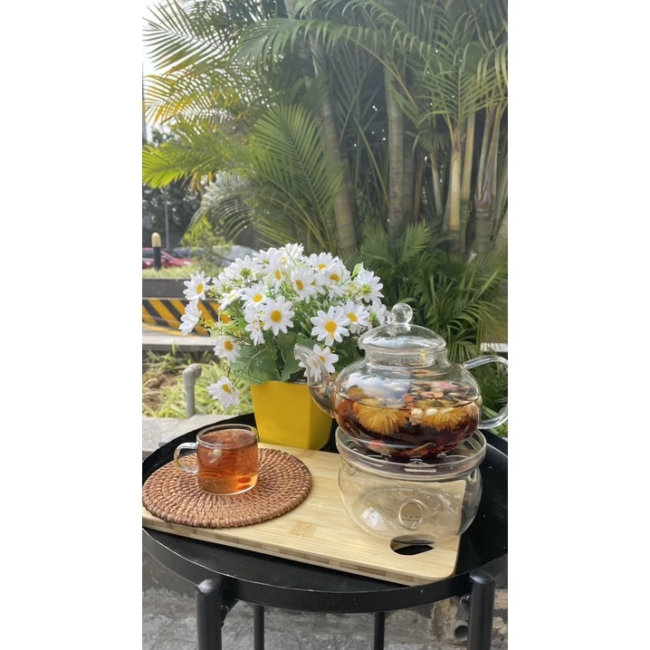 – Cho thêm 300ml nước sôi ở 100 độ C, đậy nắp lại và đợi 10-15ph cho trà ngấm ra được nhiều tinh chất trà, sau đó dùng nước đó uống cả ngày. Hoặc có thể dùng ấm chuyên nấu trà đun lấy nước uống.