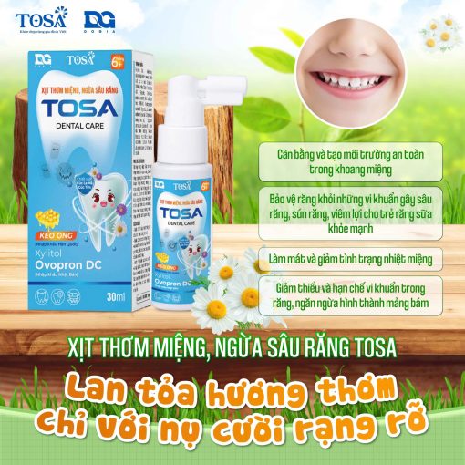 - Xịt thơm miệng ngừa sâu răng tosa giúp làm sạch răng miệng, cuốn trôi các mảng bám trên răng.